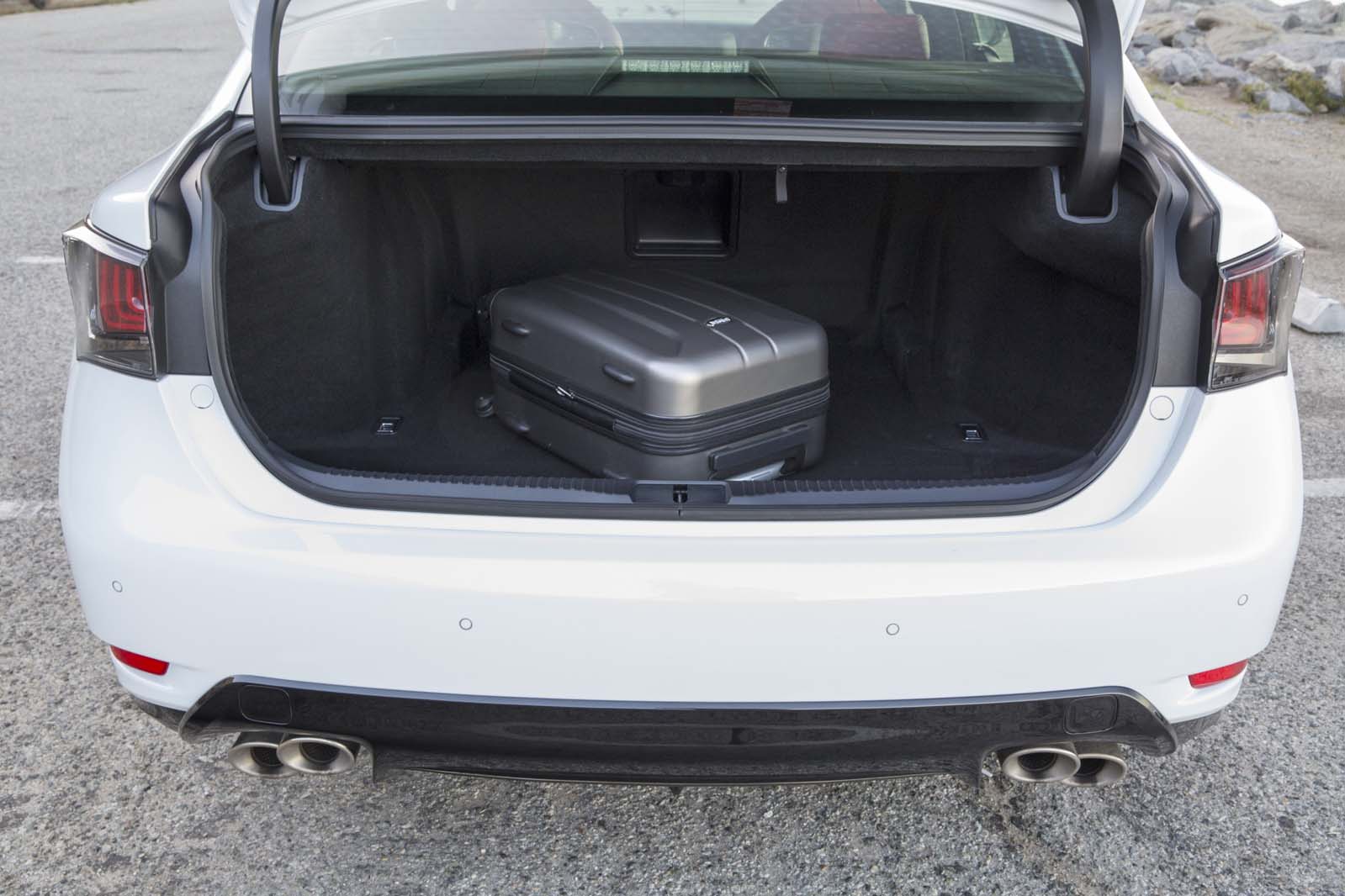 Given the numbers, it’s tempting to see the latest Lexus as a four-door RC F, with back seats which make it not just possible, but comfortable, to transport adult humans. And at 4,034 pounds, it’s not much heavier than its elder sibling. Factory figures say the zero-to-60 mph sprint arrives in 4.5 seconds, just 1/10th behind the coupe, and that the GS F will travel the 1/4 mile in 12.8 seconds, just 3/10ths behind.
