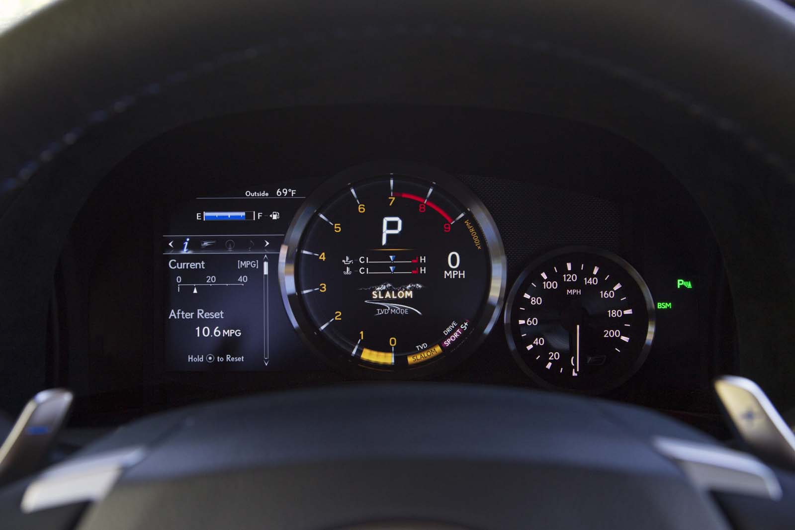 And while using the paddles to shift was a blast—the torque converter is locked from 2nd gear up in the Sport+ setting—even when I didn’t touch them, the gear selection was spot-on, and I never felt like I was hunting for power trying to punt through a corner. It’s something I meant to explore during the RC F launch at New York’s Monticello Motor Club, but either out of stubbornness or forgetfulness, I didn’t get around to it.