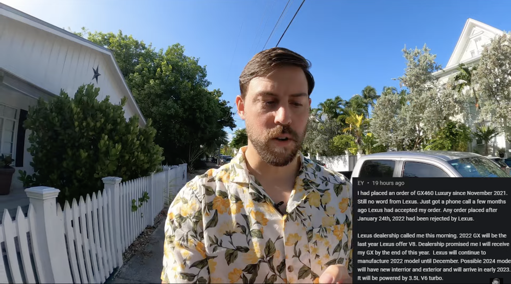 The comment goes on to tell of how he got a call from the dealership that morning divulging that the 2022 GX would also be the last year of the V8.