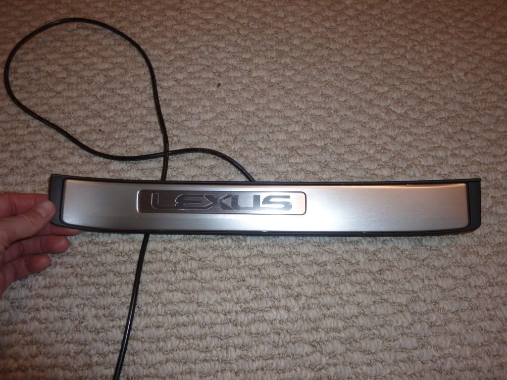 I have a used set of the Japan Illuminated door sills for the 3GS. I had them installed in my now totaled 2008, but removed them before the insurance company took ownership. All I have are the sill plates and the black cable that comes attached to them. I do not have, what appears to be, the additional wiring necessary for installation. Also, the passenger side front sill has a small crease from when I removed them from the car. They were a great add-on and look great when installed. They retail from Carson Toyota for $730 + $45 shipping new in the box. I will accept $250 and free shipping (within reason).