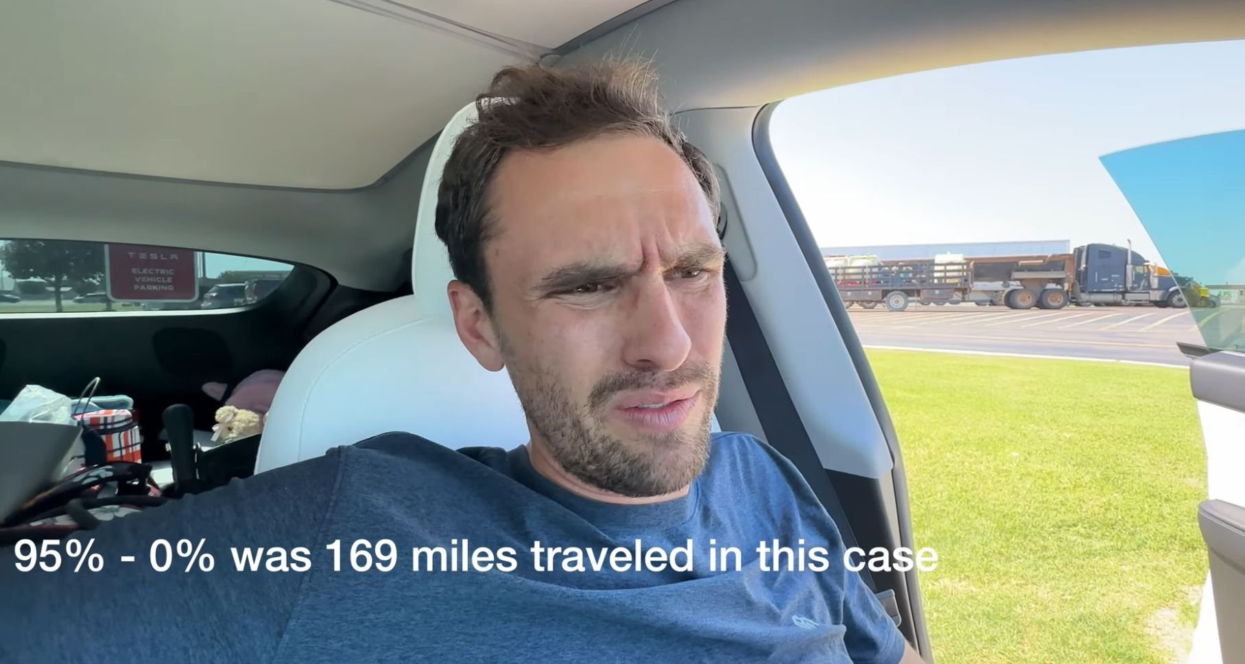 In my last 1000 mile trip, I averaged 80 mph, 3 passengers with the cargo area full of suitcases. Road conditions were varied from mountain passes to straightaways. Ambient temp was above 90 F and I had the AC blasted and I averaged 255 miles. I also didn't ignore the trip planner like he did