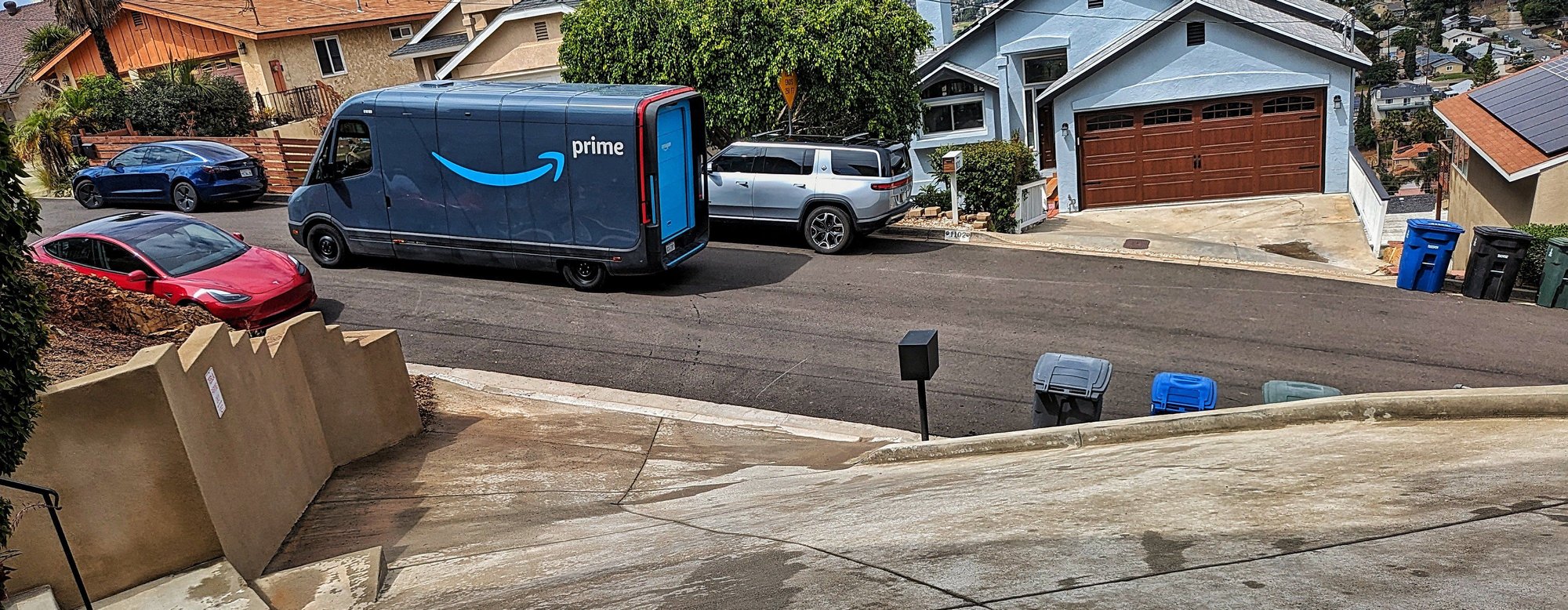 The new Amazon delivery vans. I'm seeing these everywhere in the Bay Area. Looks like the switch to Rivian EV's is going well, I haven't seen any gas driven vans in awhile