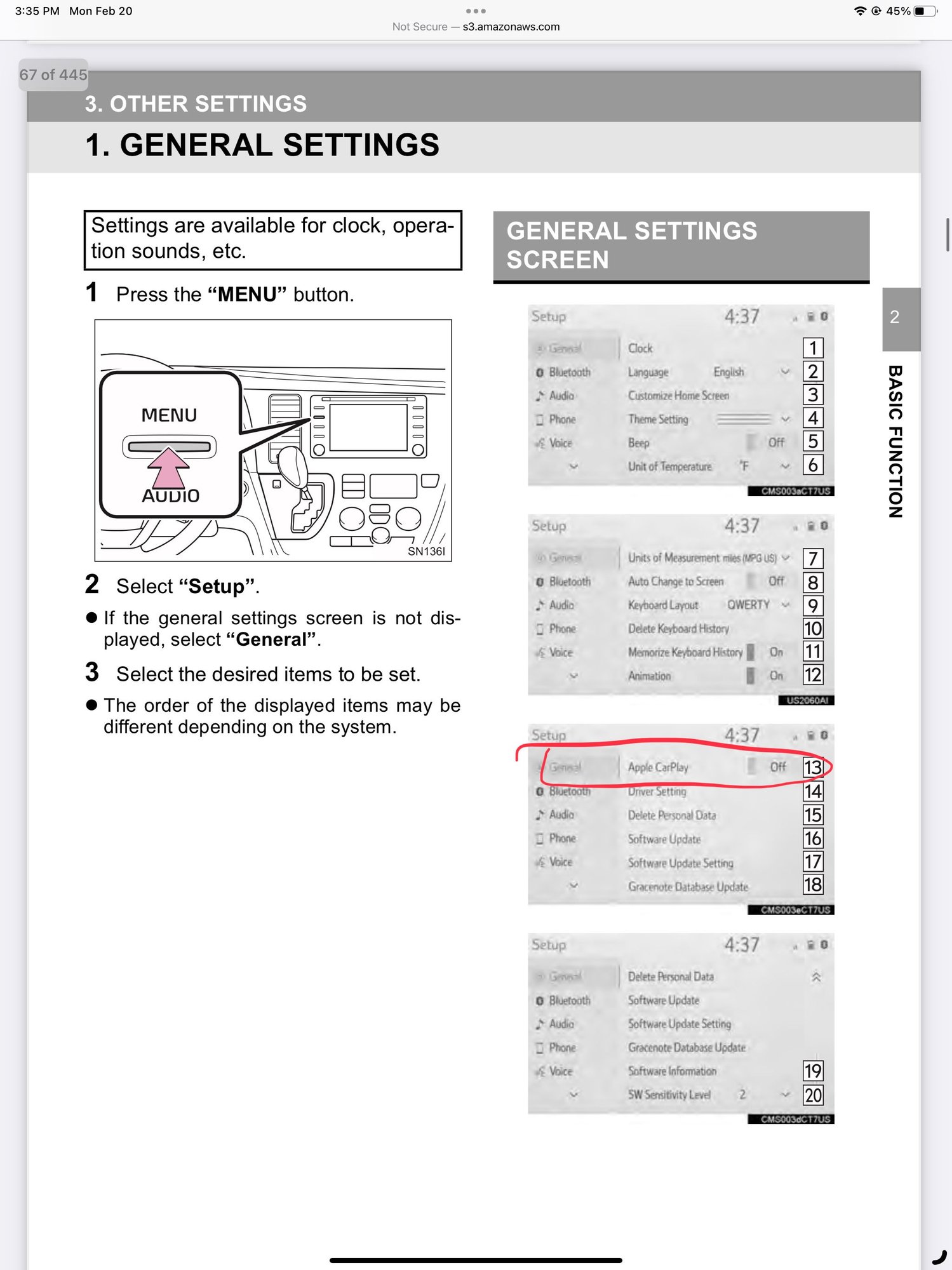 I went into the settings though and I saw nothing in there that said anything about CarPlay...and every other Toyota model I have rented CarPlay fires right up