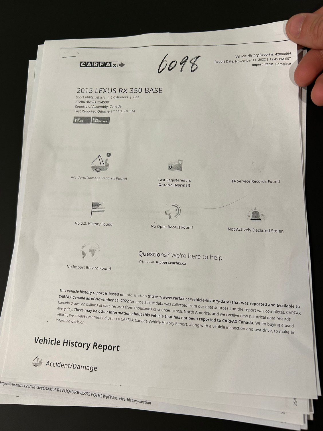 The value was 11k CAD -- are you talking about this part of the carfax or the other "minor" item?
