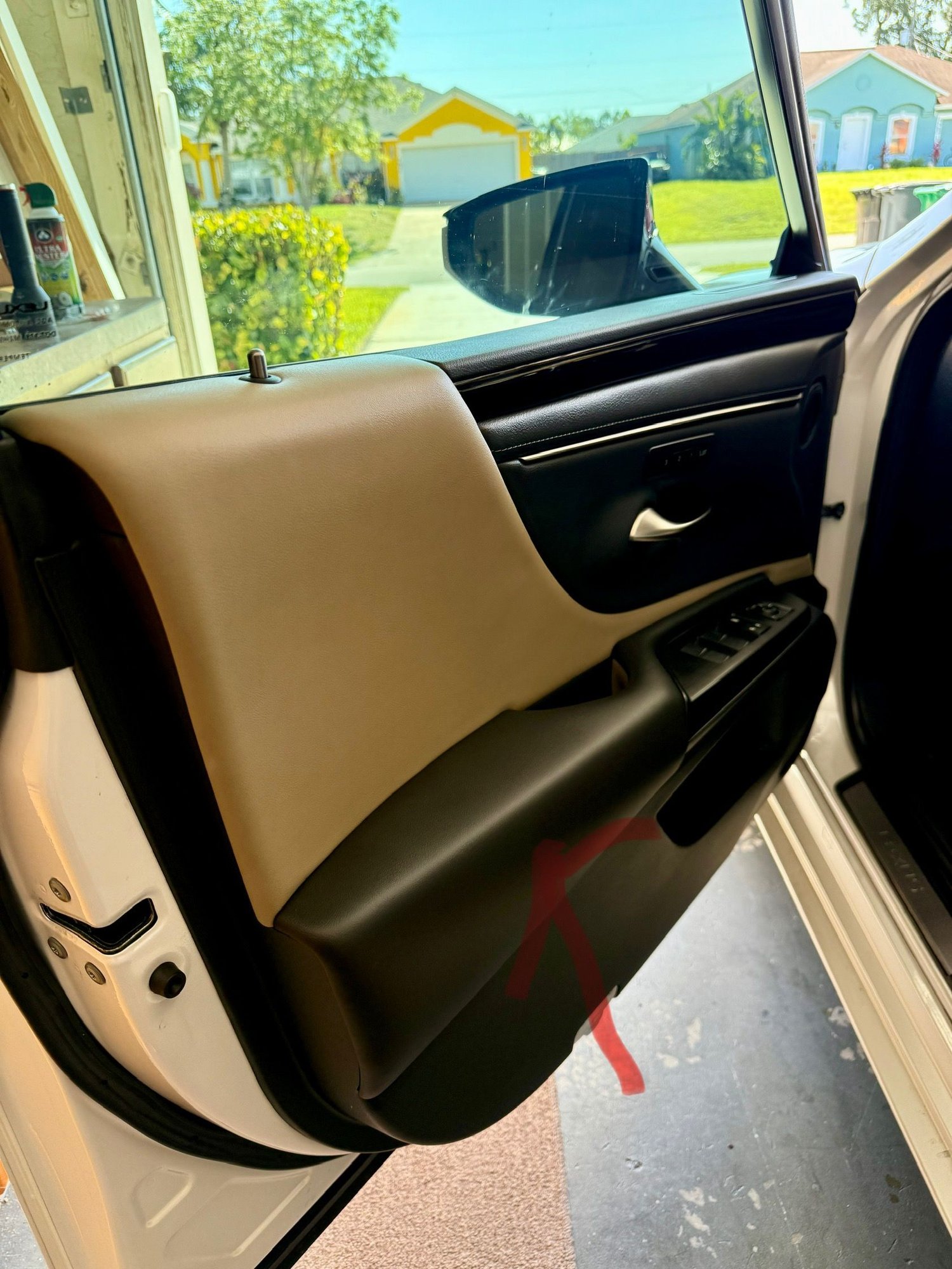 I was referring to the material taken out of the door to get a clearer view of its thickness and what lies beneath the latex glove laminate. That said, I really prefer the new color contrast!