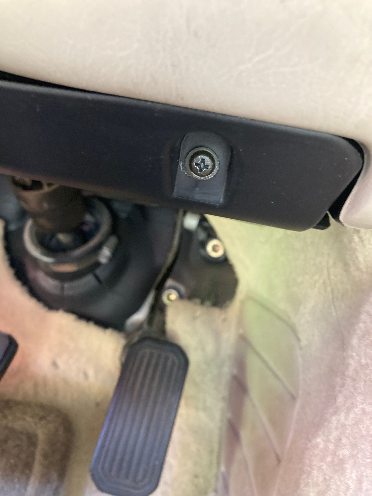 Once that was off, I had to remove the ignition cover to reveal 3 of the necessary bolts to fully remove the lower dash cover. I used a stiff butter knife with a thin rag around it. There are 2 clips on the top and 1 on the bottom. I had to be careful, but it came off pretty easily.