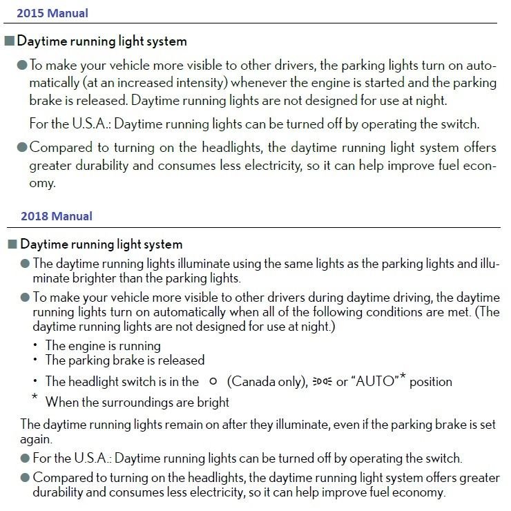 My DTRLs no longer come on upon start. They only come on when I engage the gear into Drive. Before and my previous IS DTRLs powered up upon start. Does anyone have or had this issue?