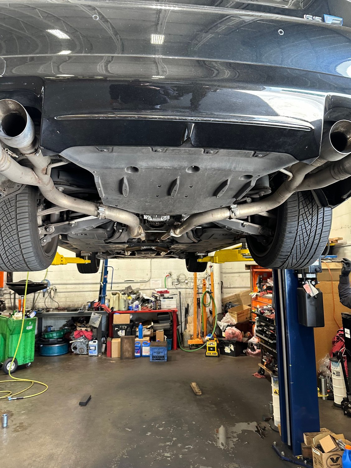 The whole setup is made by PPE. The midpipe is PPE X pipe that is catless and non-resonated. The axle back is also PPE's muffler delete.