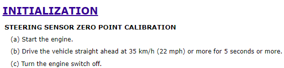 Drive straight ahead at 22 mph (or more) for 5 seconds. That's the initialization for the steering zero point. There isn't really anything else unless you have the trunk open when you remove power.
