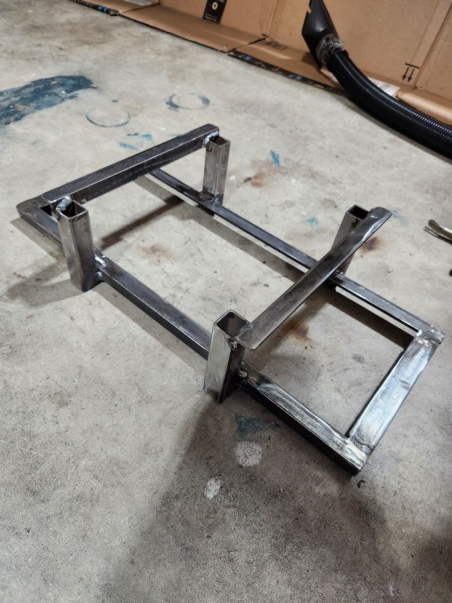 The double decker amplifier steel mounting rack fabrication, fit check and tweaking, priming and automotive base, glitter, and clear coat: