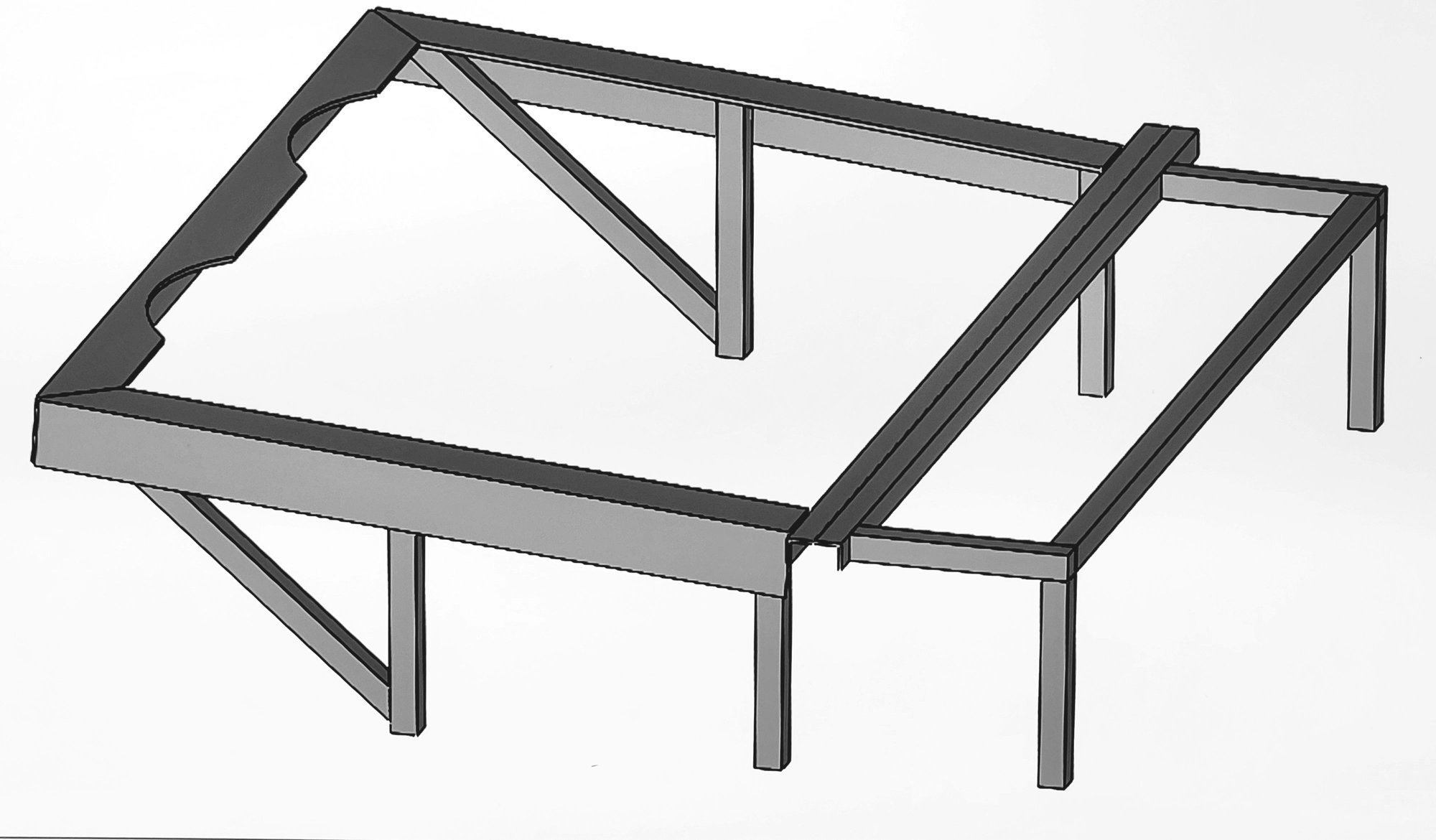 The steel rear deck frame model, isolated from the above CAD assembly: