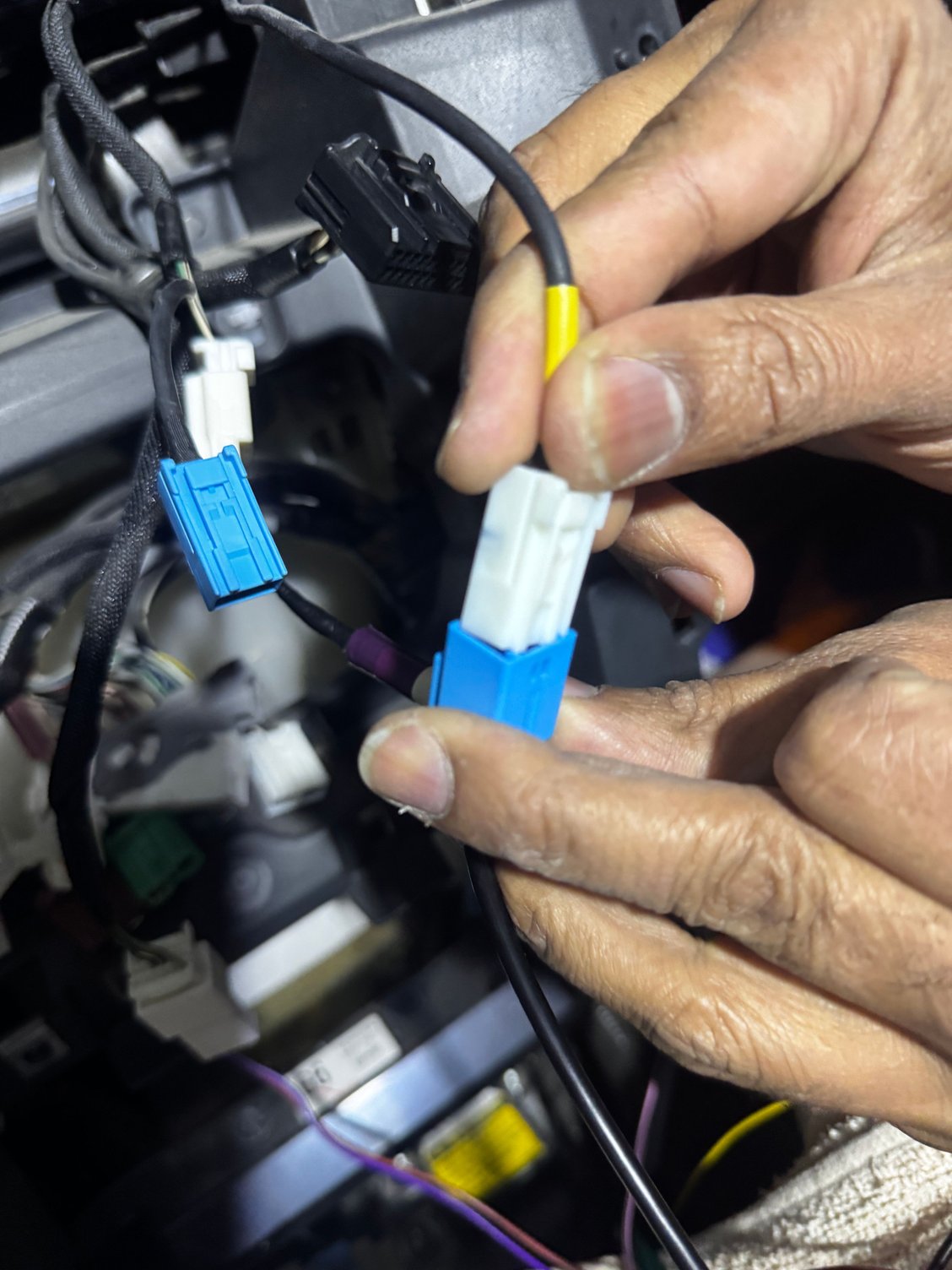 other installation videos, I noticed that most people connect the blue connector from the 360 decoding box to the blue connector of the OEM system, not the white one.