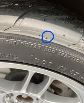 However what I am looking to correct is outer wear from hard cornering. This is from not having enough camber and the side force on the tire is actually rolling it over onto the shoulder/sidewall transition. Check out the sidewall of a tire and note the triangles with 1 corner pointed toward the tread. These are part of the Tread Wear Indicators. Additionally, general advise for track & AutoX is the triangle should only sees wear to that tip closest to the tread. When cornering more aggressively without enough camber, more of the triangle gets worn away. This is by no means a fact, just a reference point.