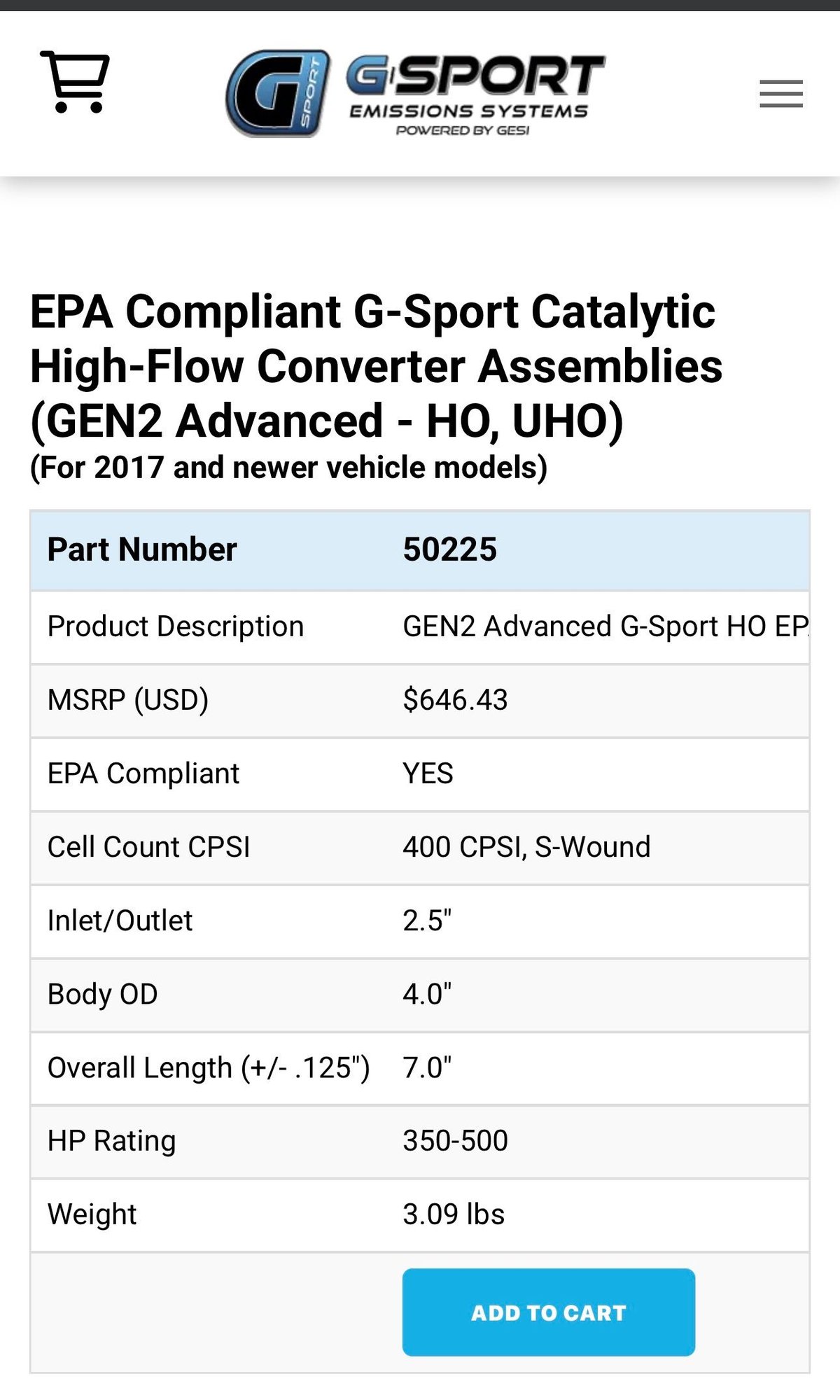 ...I would think something from GESI/G-Sport would work here and since most of the offerings are EPA certified I'm thinking you'll be fine emissions wise.
