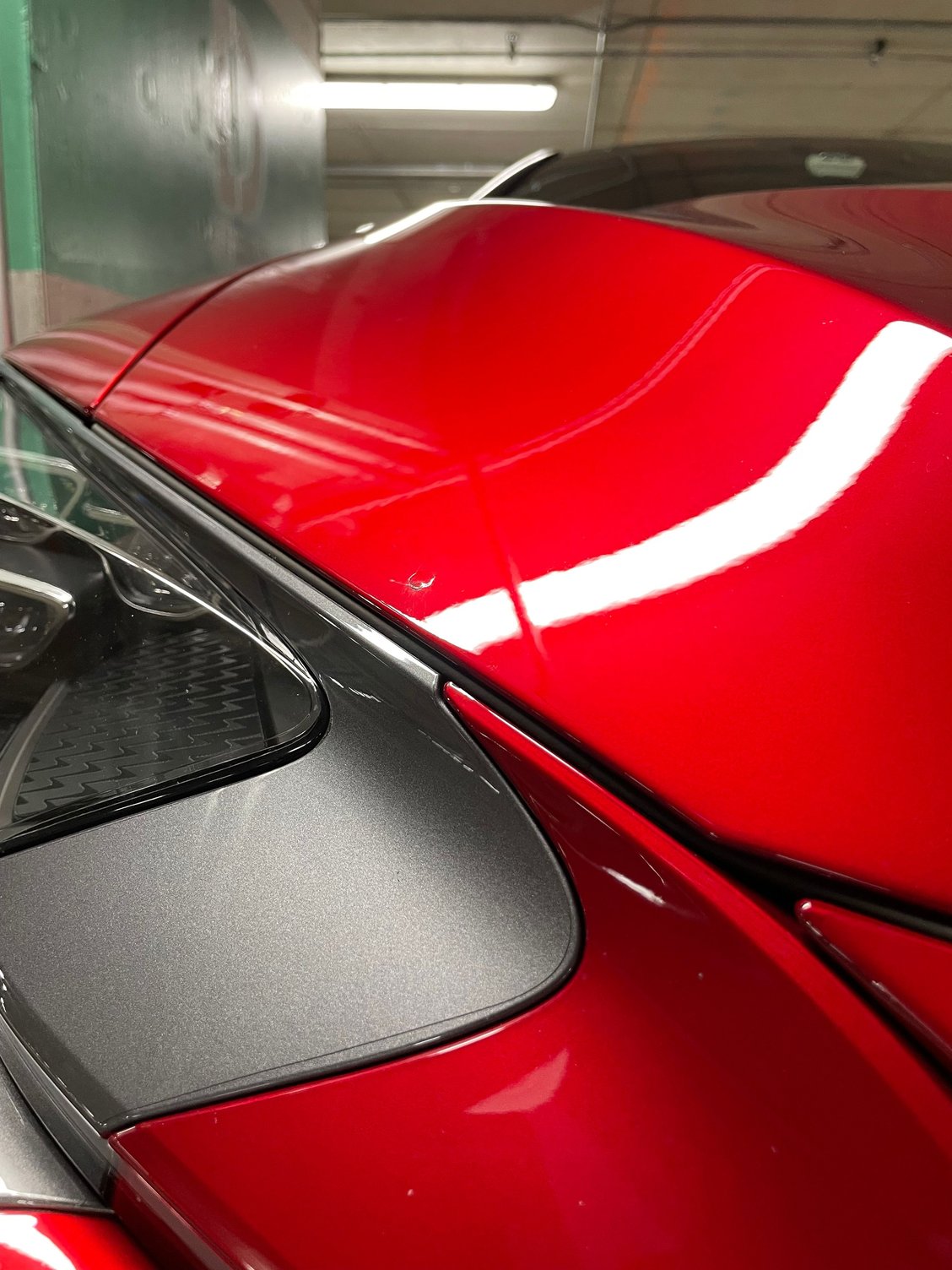 First real damage since taking delivery last July. Took a couple of loose pebbles on the highway...even with PPF, somehow it looks like it hit hard enough to possibly bubble up the paint itself. ugh. Also found one under the lip of the hood where it managed to chip the paint even though the PPF is tucked under. Car is a daily driver so it was bound to happen...probably would have been a lot worse if not for PPF!