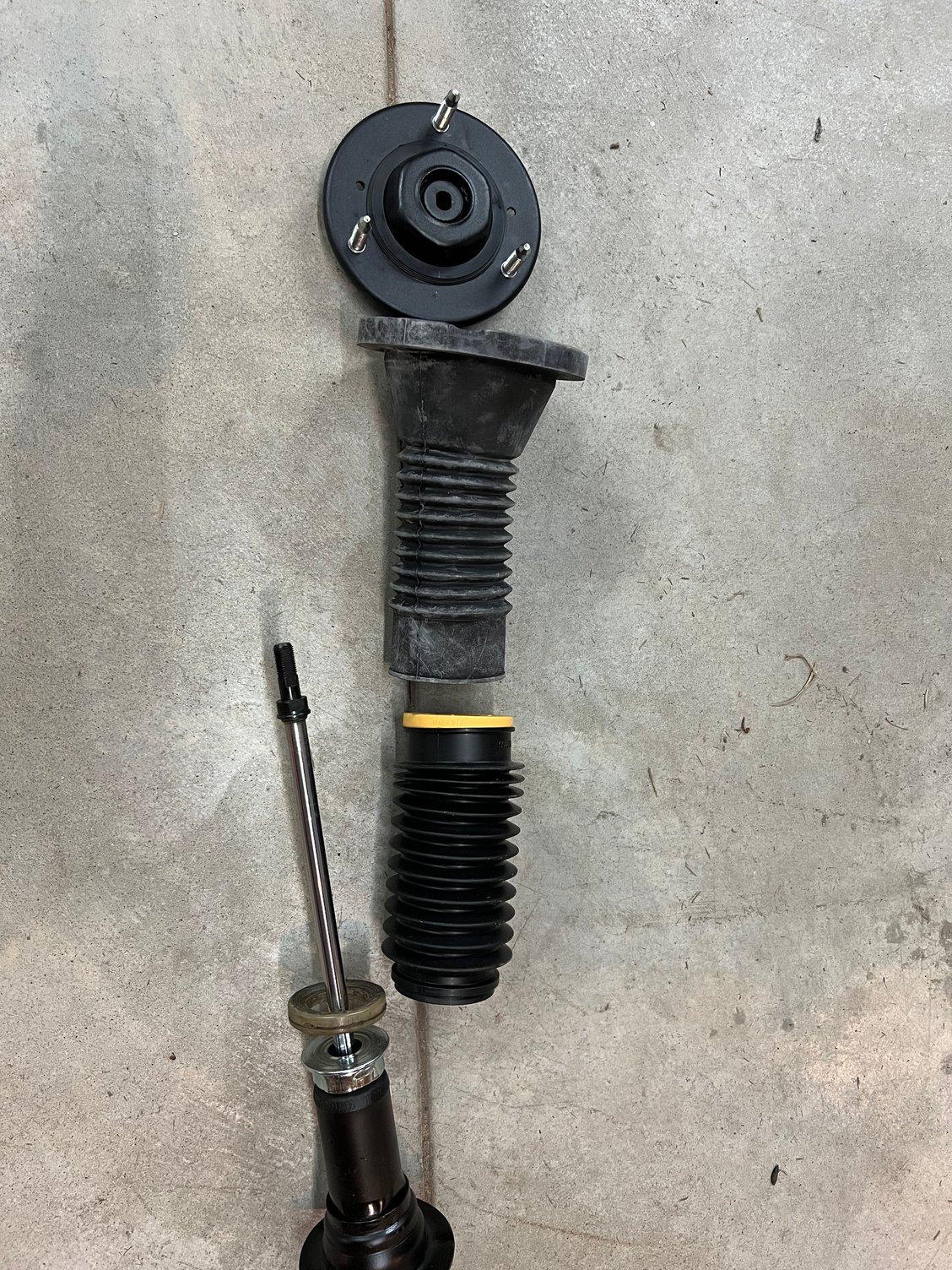 (Or funnel-shaped) one fits perfectly, fits the top…looks right…but didn’t have any kind of ‘bump stop’ or spacer with it? So maybe I just need to see if the little yellow spacer from the second boot fits into the cone…I’ll try that. I’ll be back to the car this week.