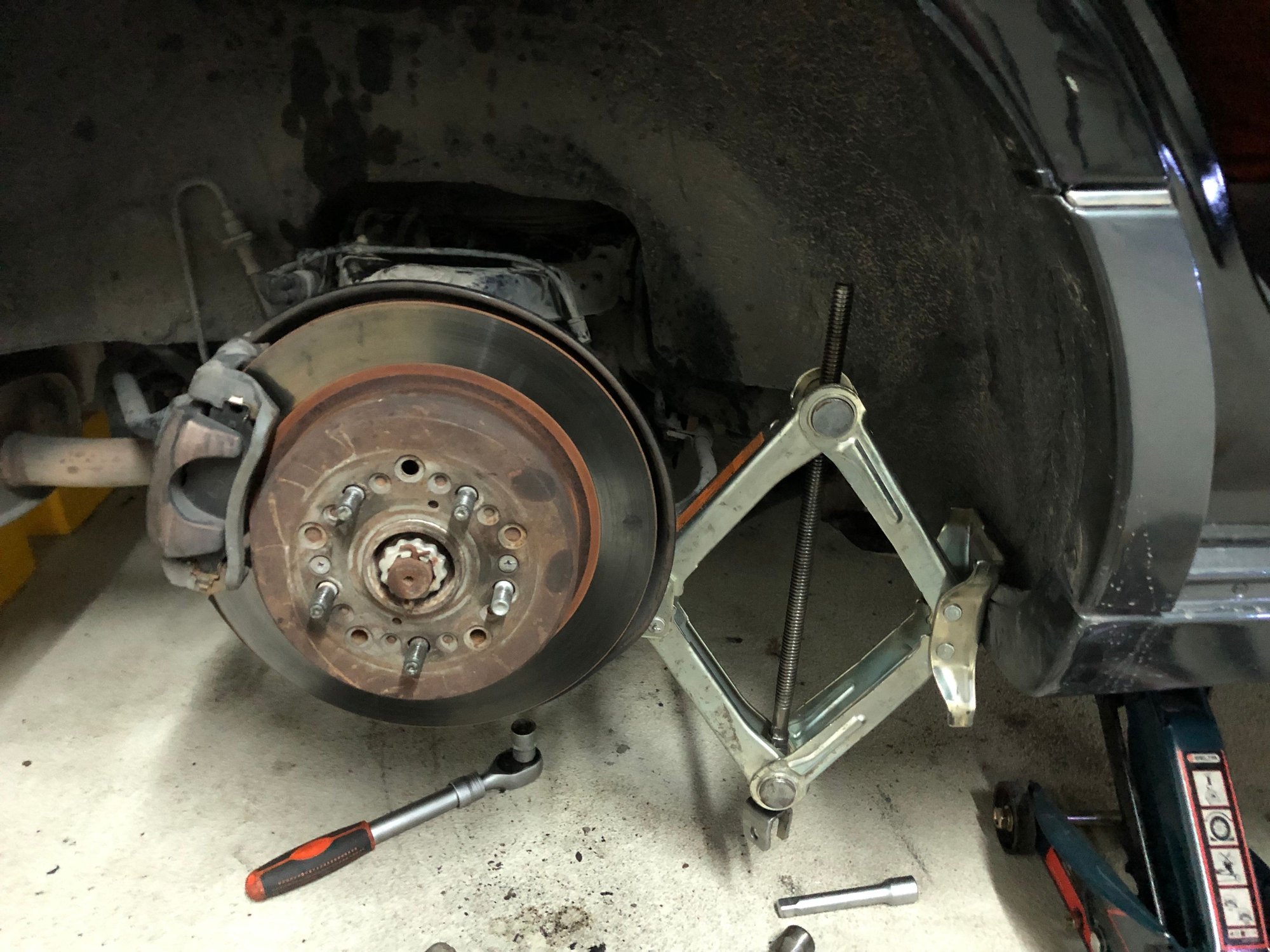 Previous bushings and balljoints were so shot it was actualy steering car right and left. Very unstable and super sketchy!!! While replacing part number 8, ball joint started to slip and I couldn’t tighten it up. Had to put some pressure on it therefore I had to use my scissor jack for that 🤫