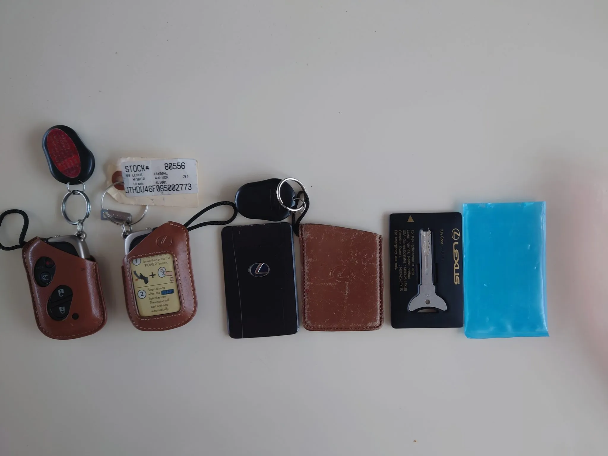 I know, from experience, that if there is one thing on the planet that someone will take off and throw away with absolutely no thought whatsoever for the madman who will own the vehicle seventeen years later, it is these key gloves. Look at them. The subtle saddle-leather coloring. The tasteful thickness of them. Oh my god, they even have a Lexus watermark. They are truly great looking, and match the saddle-leather manual covers and first aid kit. However, weeks of research has shown that there are exactly zero for sale, not even some old long-gone ebay listing will show these. All you can find is modern new saddle leather gloves for the newer LS500 keys. I have found a listing or two for the same gloves (with the instructions insert) in black, but I can tell, these saddle leather ones will definitely be a white whale of mine for years, if not for the rest of my days. Especially the one for the card key, as the glove obviously makes it too big for a wallet in which case what is the point? That was probably the first item the original owner chucked. They don't seem to have been in the official Lexus accessories catalog, rather they were likely supplied in the car and had to be ordered by the dealer for replacements, otherwise they were mailed to owners per some old posts here on CL. No part number to speak of. It'll be a long journey.