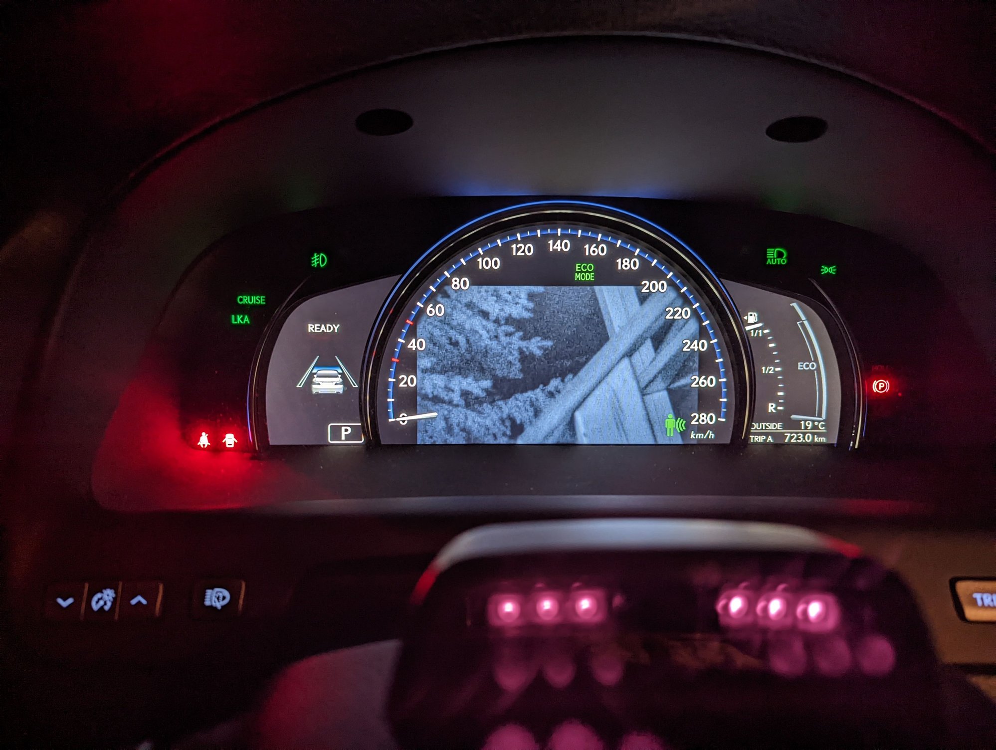 New pic - doing Utility->Manual camera adjust. I still have no cam connected but just wanted to test if the GVIF link is up. It bloody is. Yas. Pedestrian detection reticle is applied by ecu (not dash) and sent via gvif video link.
