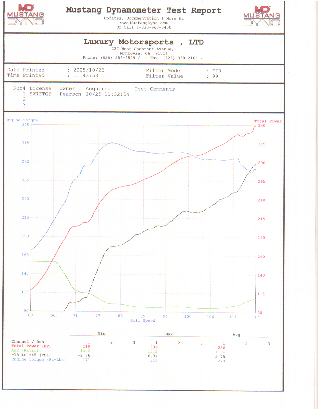 RWHP= 339 / TQ= 316 / Boost= 6.0 lbs. / A/F= 10.5