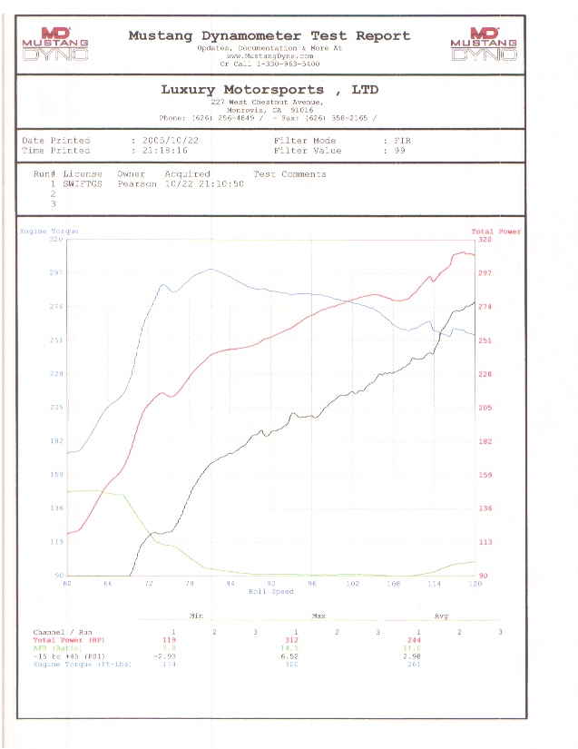 RWHP= 313 / TQ= 301/ Boost= 6.5lbs. / A/F= 10.5