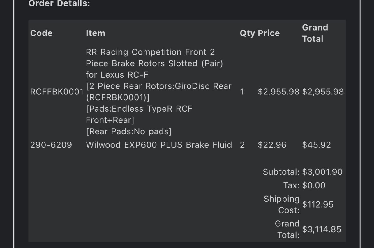 After some research it appears on the lexus parts website the calipers are compatible between base/track rcf. I went ahead and just ordered the girodisc kit from rr-racing. I already had 4 stainless steel brake lines on order from Figs.