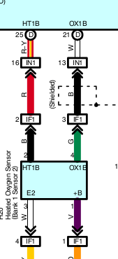 Before testing it, you need to start with the basics, check whether you have power coming to the O2 sensor in the first place, if B2S2 has power, while B1S2 doesn't, only then start tearing into the wiring to check the splice connection. Somewhere in the area marked in the diagram above, you should see a crimped connection with 2 wires becoming one.