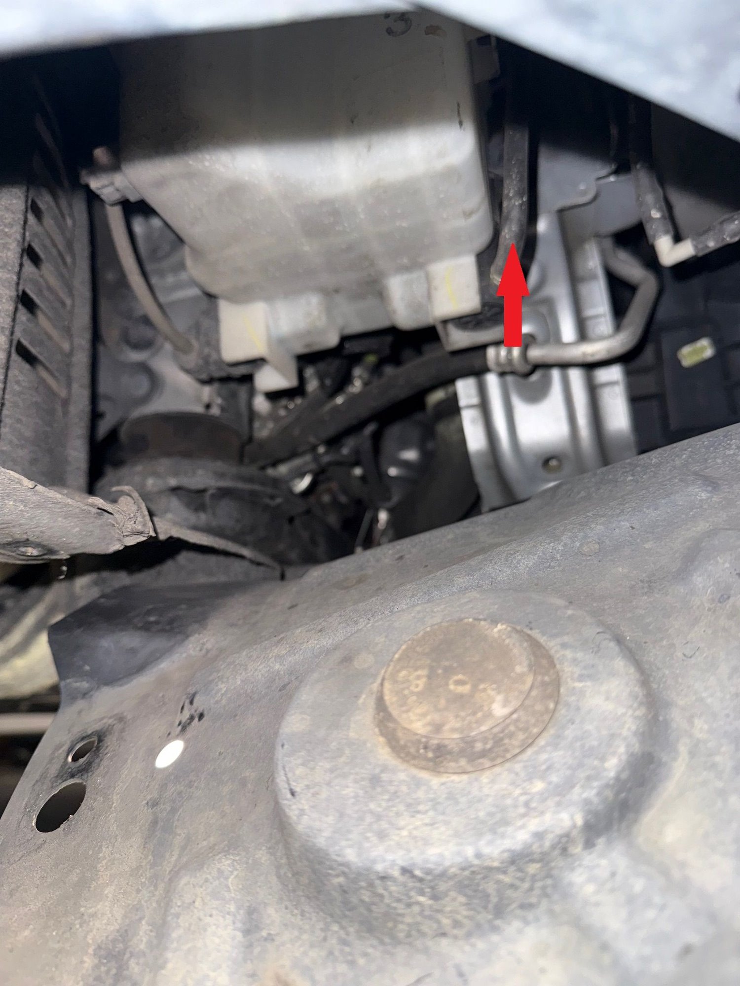 2) From under the car, close off the fluid supply tube to the passenger side washer nozzles