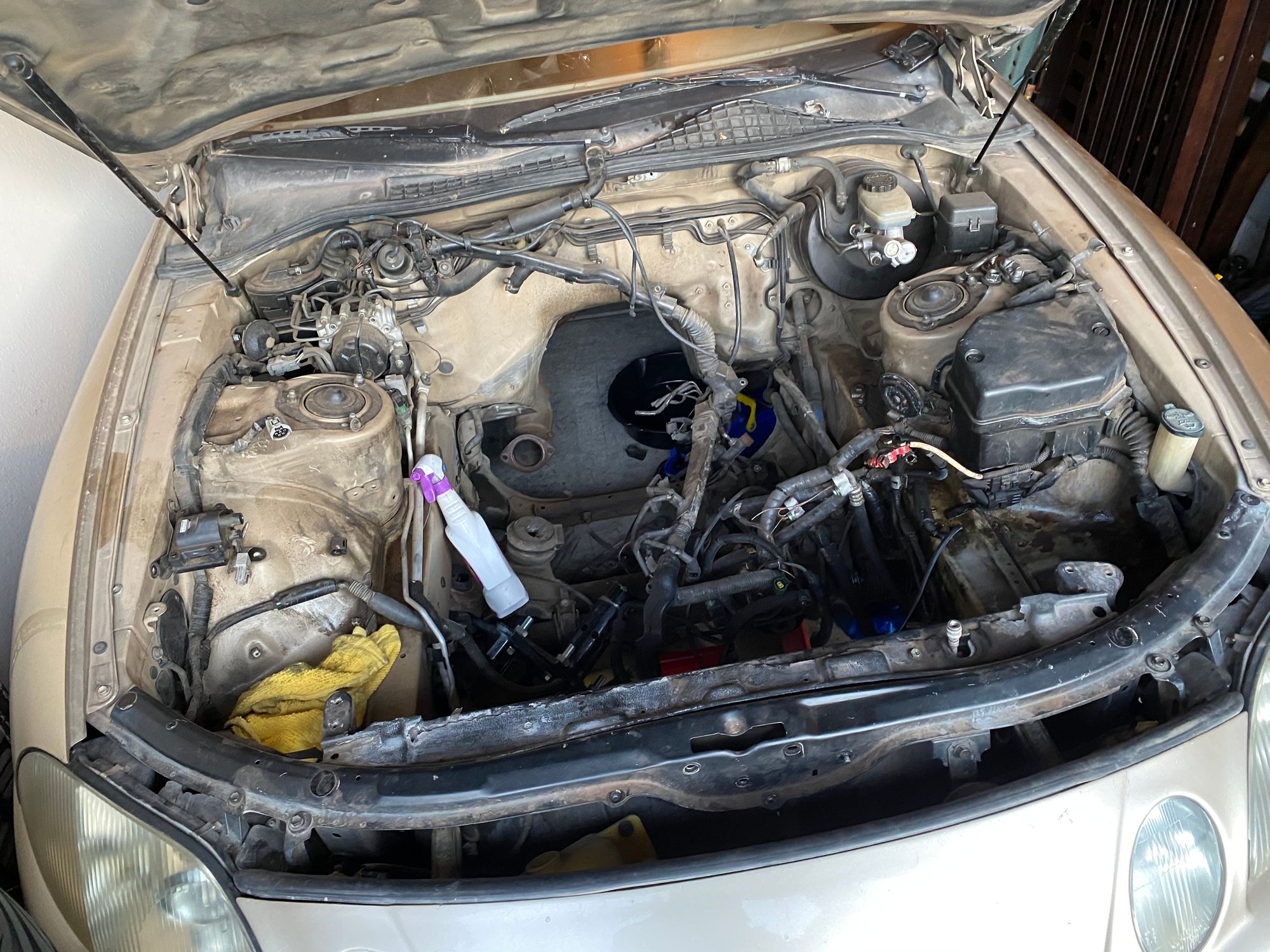 this week im gonna be cleaning shaving and stitch welding the engine bay probably deciding what interior pieces I want to keep and pondering the idea of splitting my headlights delining the lenses and removing the chrome overlay In the housings