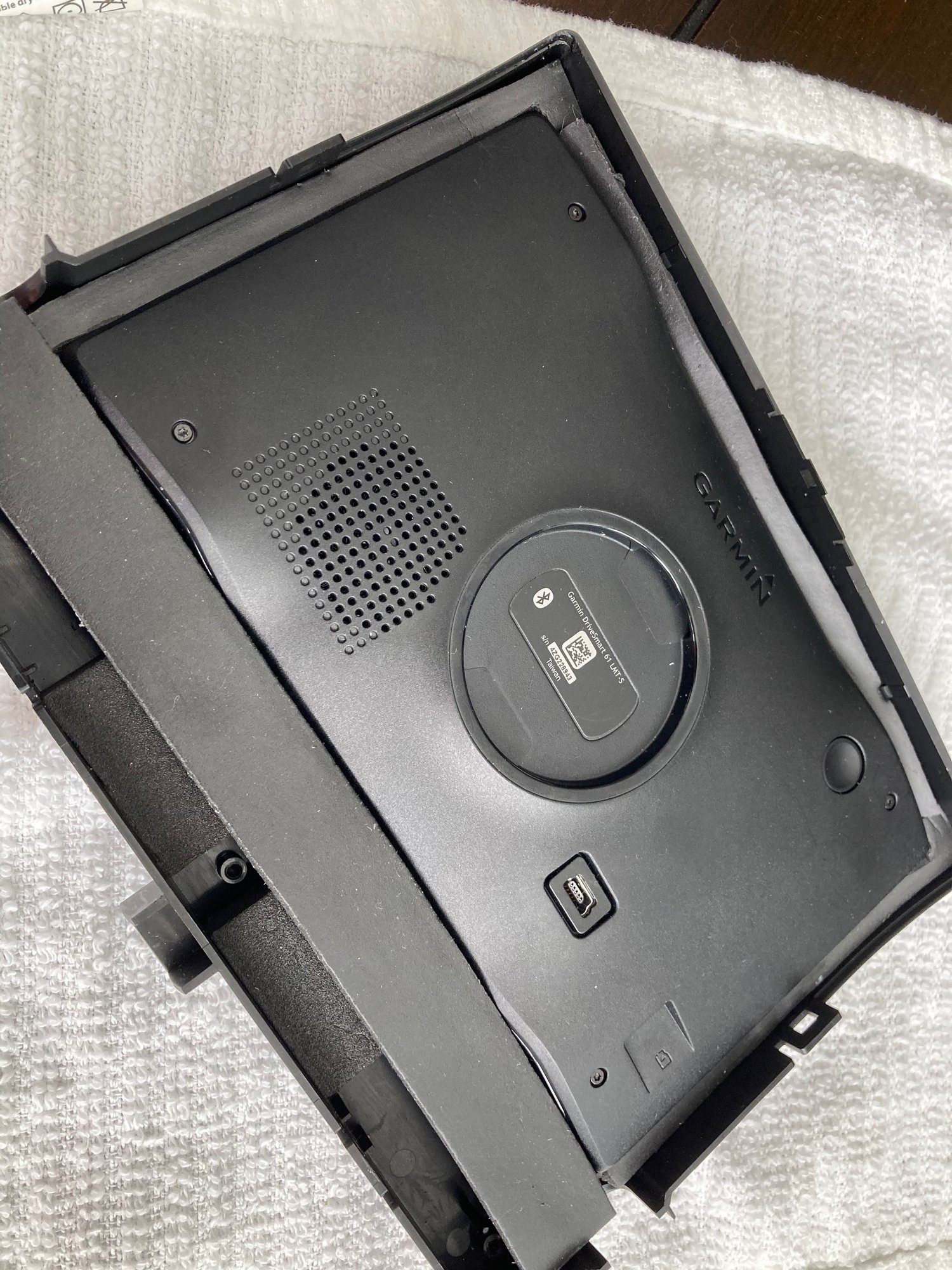 Cleaned bezel lined with shaped foam to fit Garmin.