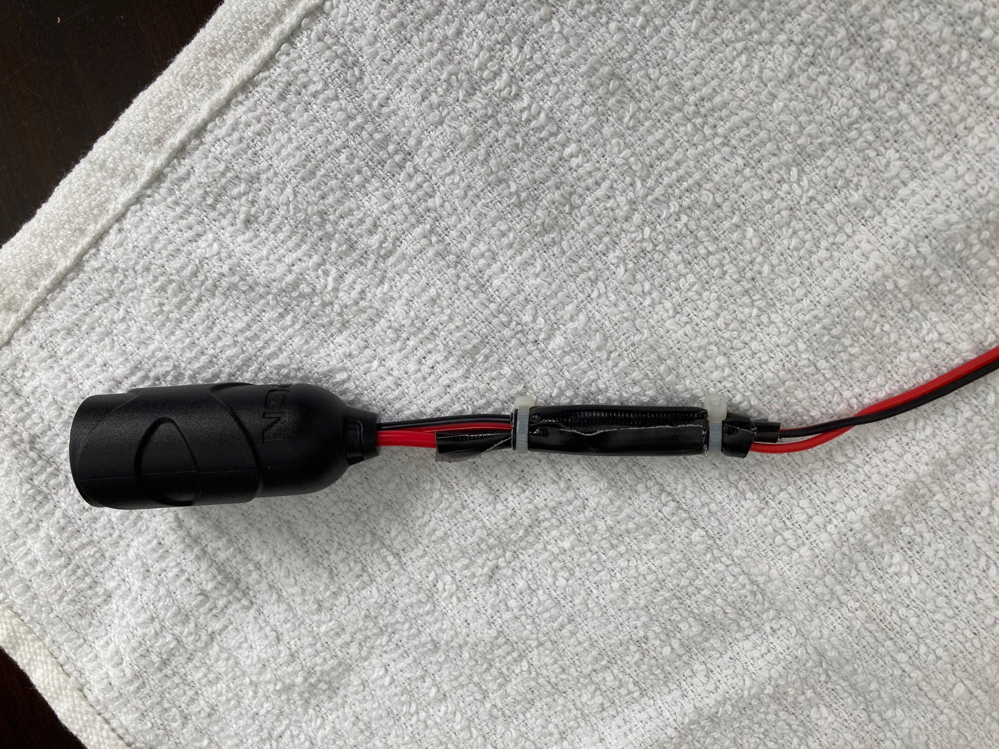 Reverse light cable showing red and white black wires.