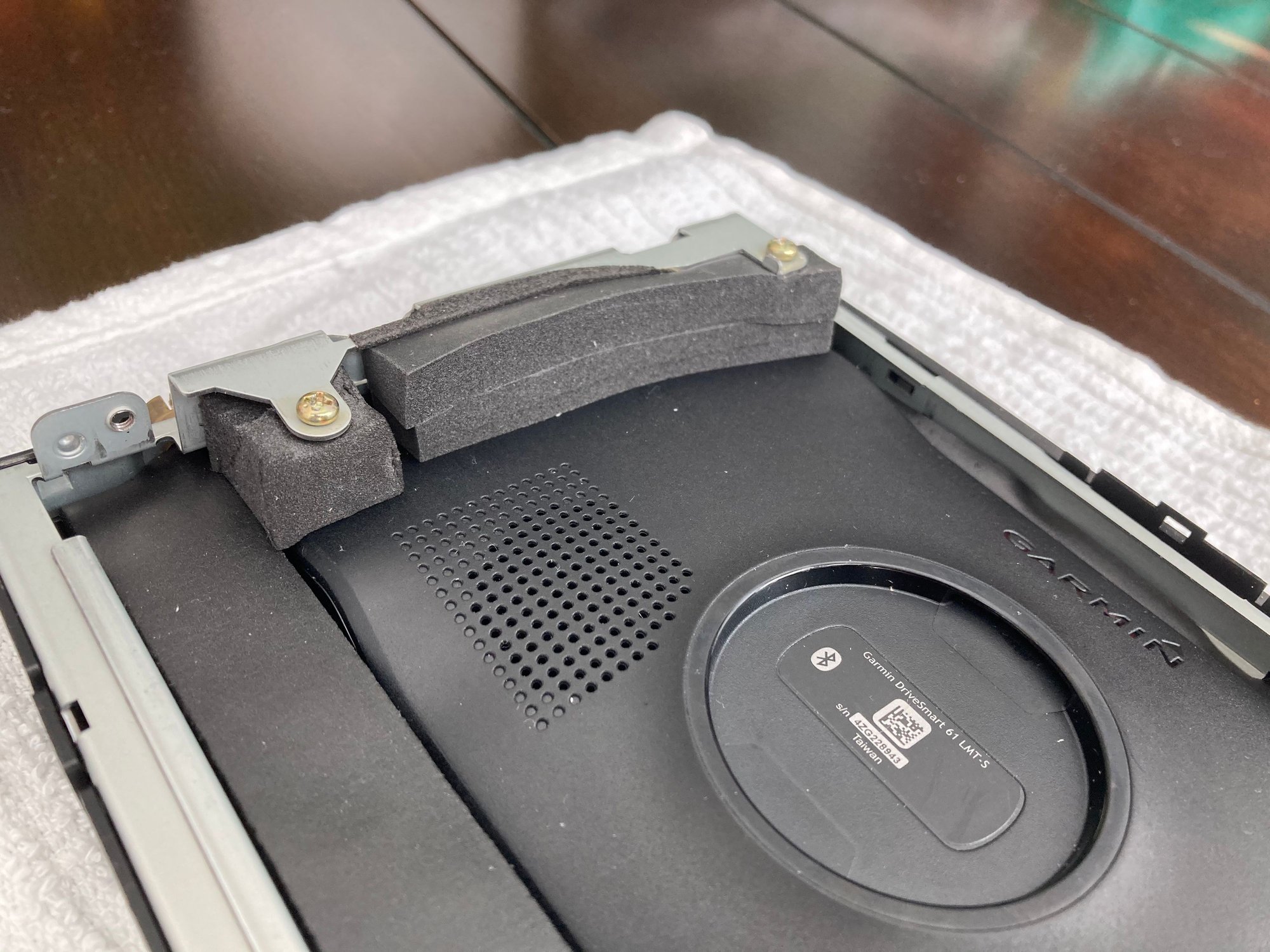 Garmin held in position using stiff foam fixed with screws from original screen assembly