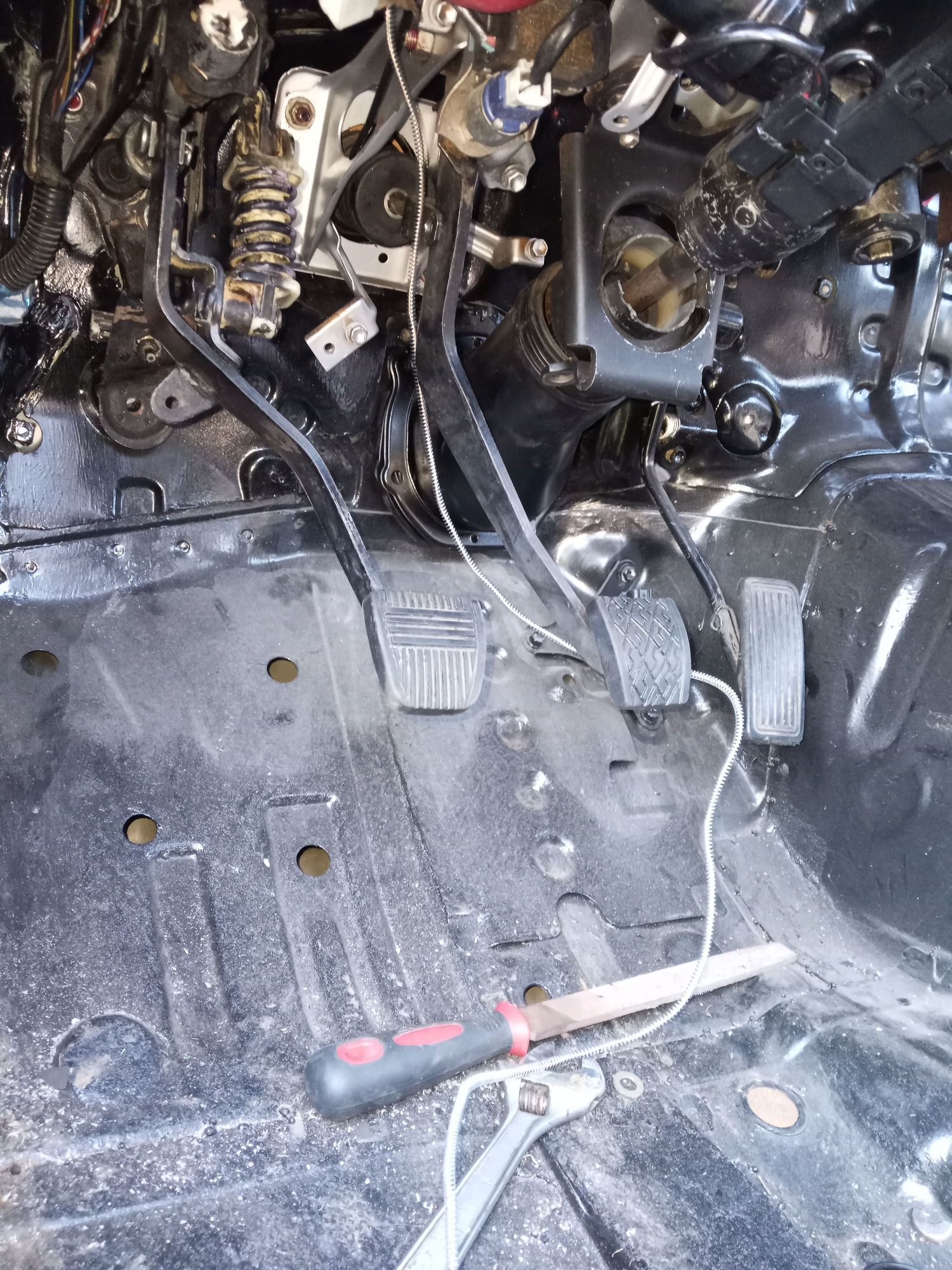 Brake swapped out for the sc300 mt one. I had to drill holes for the clutch Master.